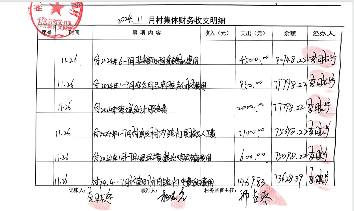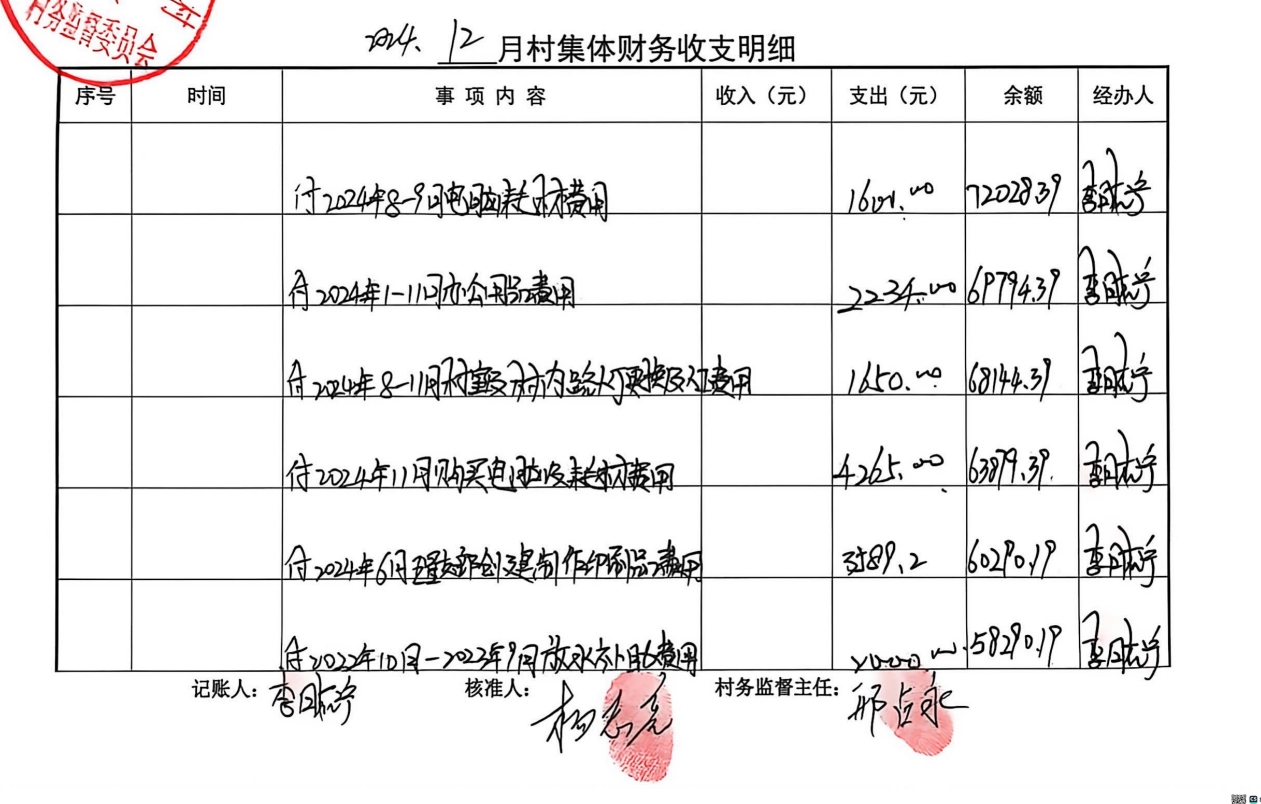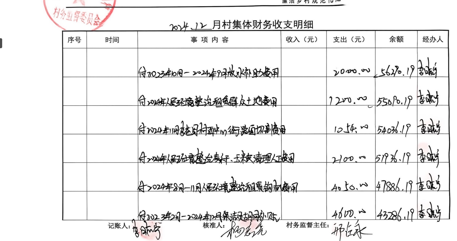 开元办李藏固村2024年10月-12月收支情况表