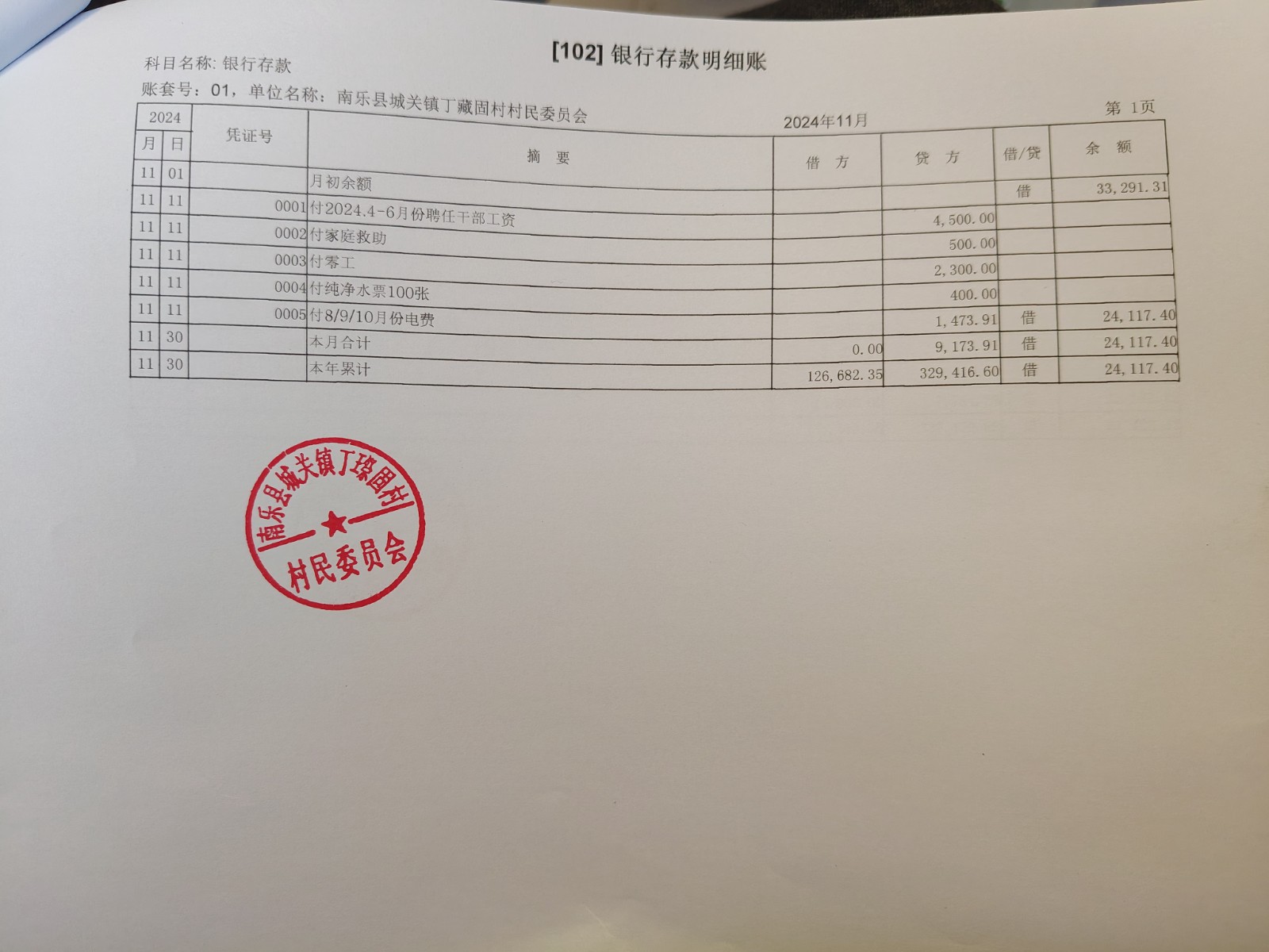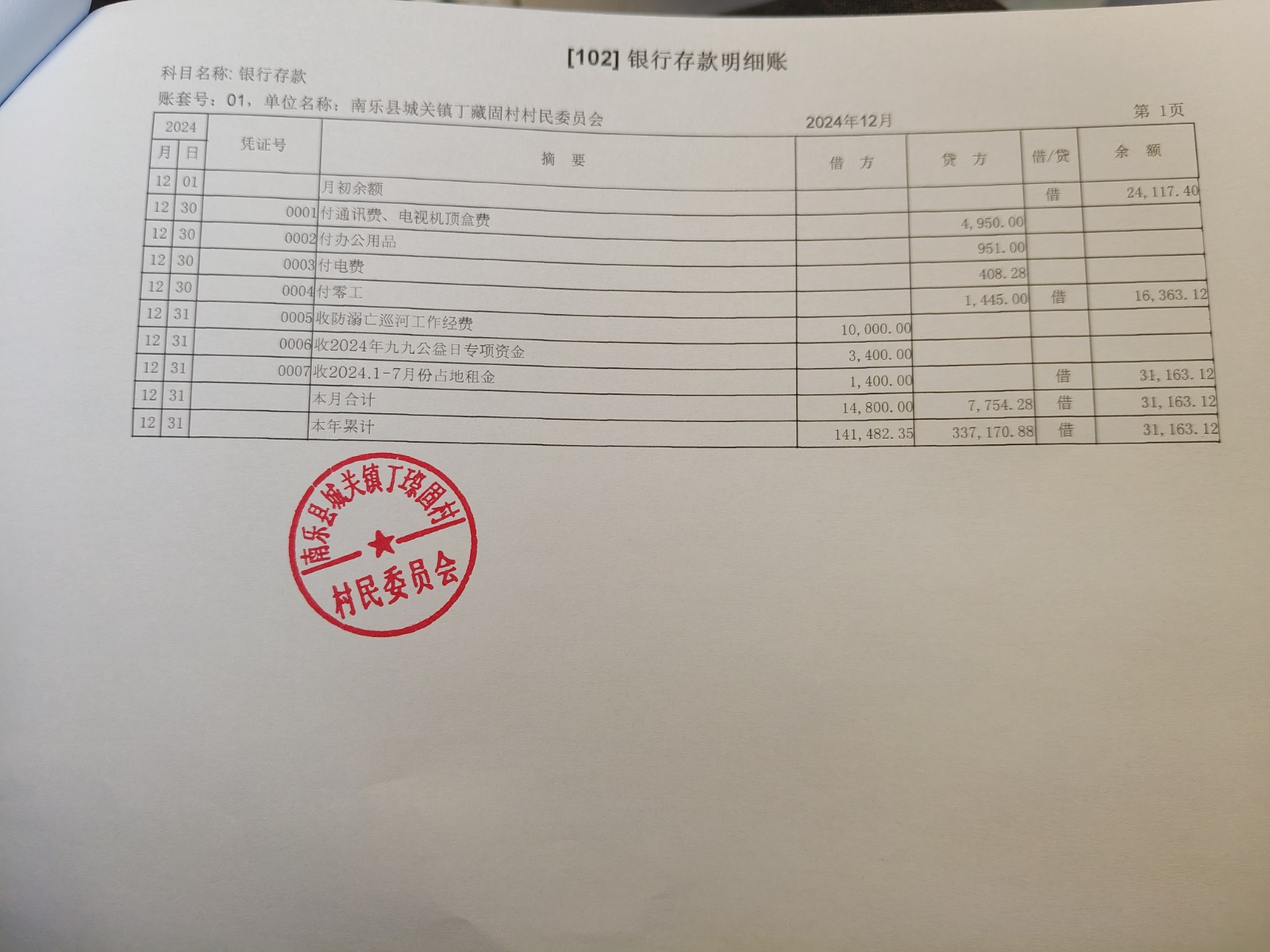 开元办丁藏固村2024年10月-12月收支情况表