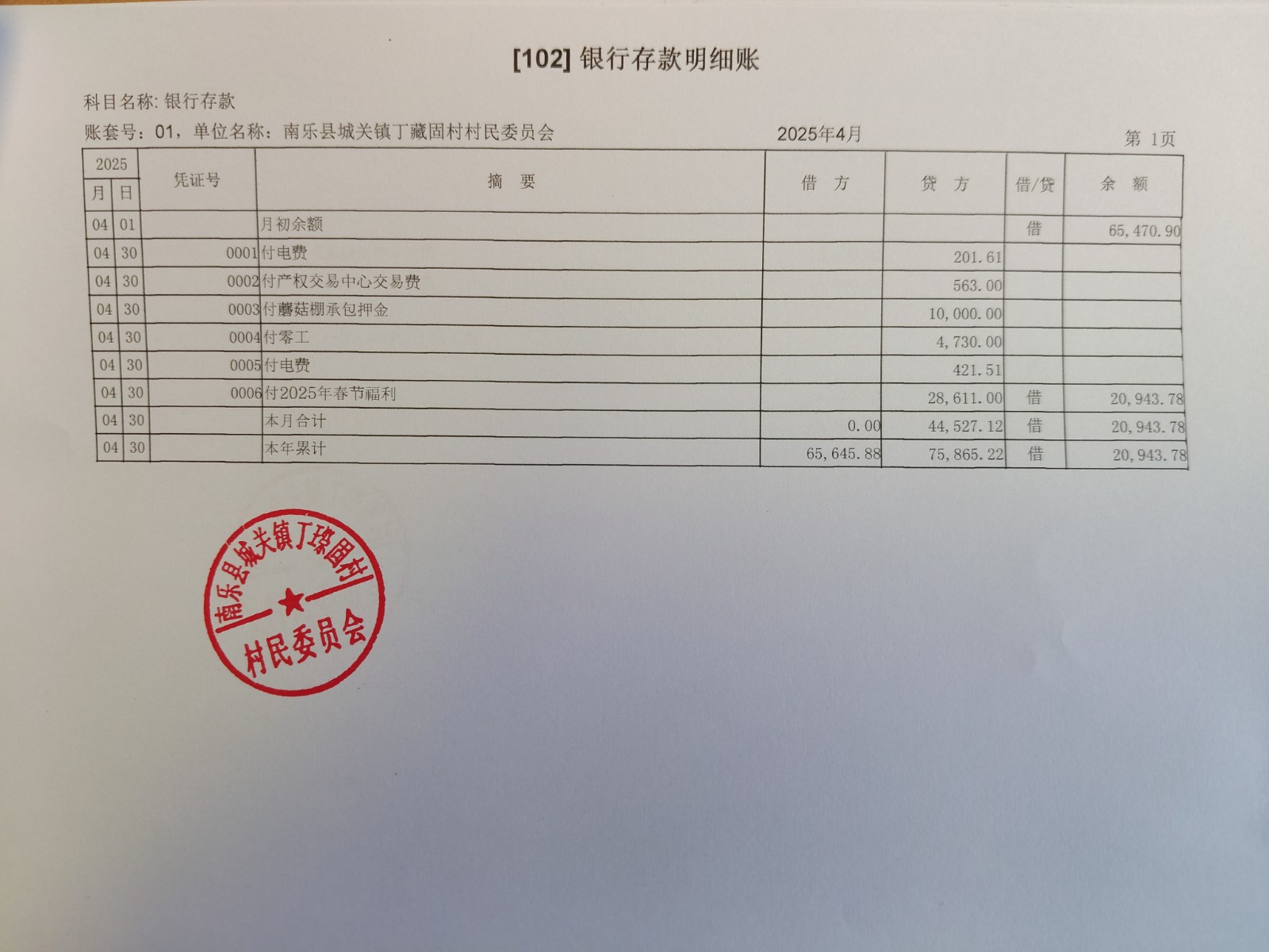 开元办丁藏固村2025年4月-6月收支情况表